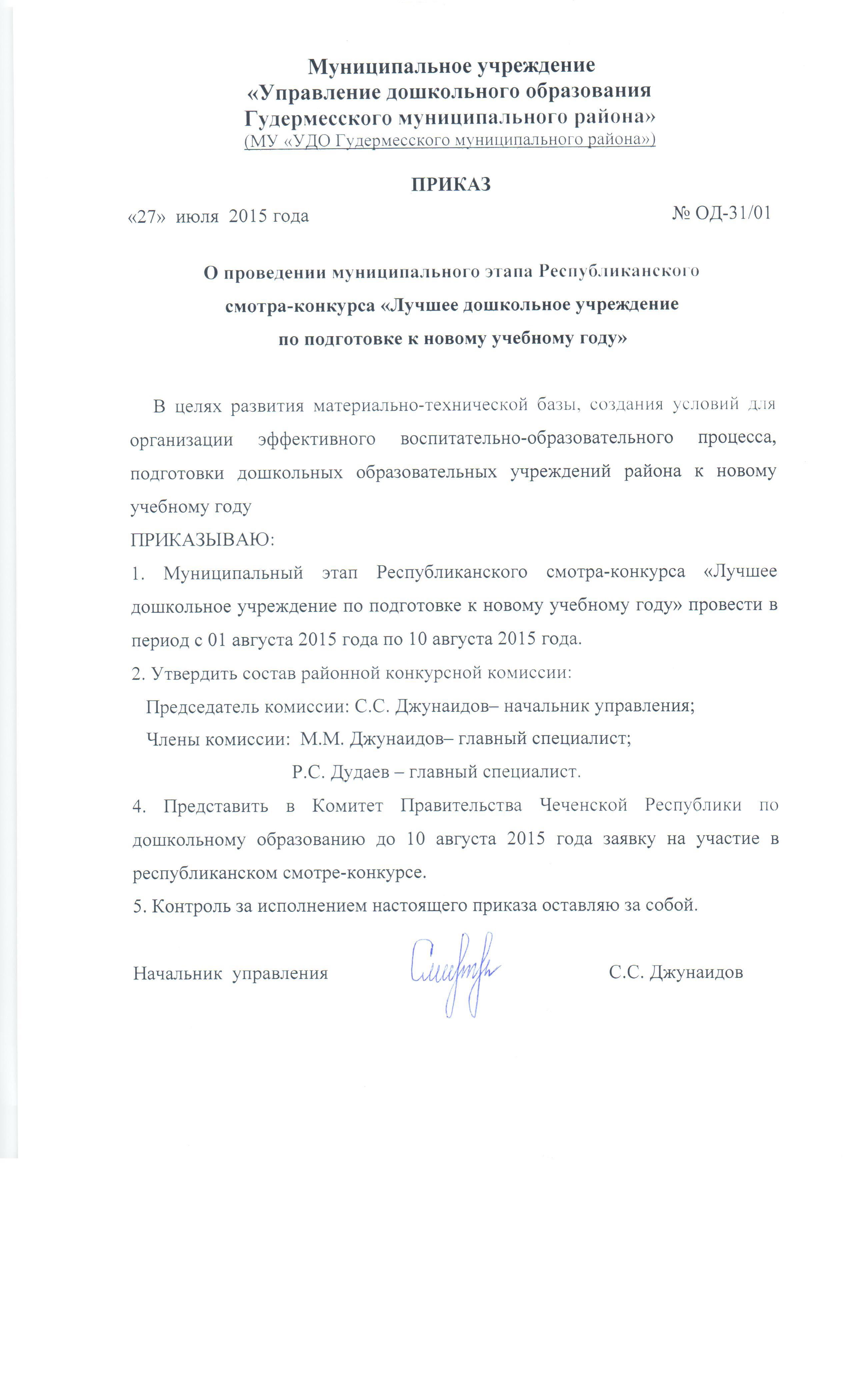 Положение о Муниципальном учреждении «Управление дошкольного образования Гудермесского муниципального района»